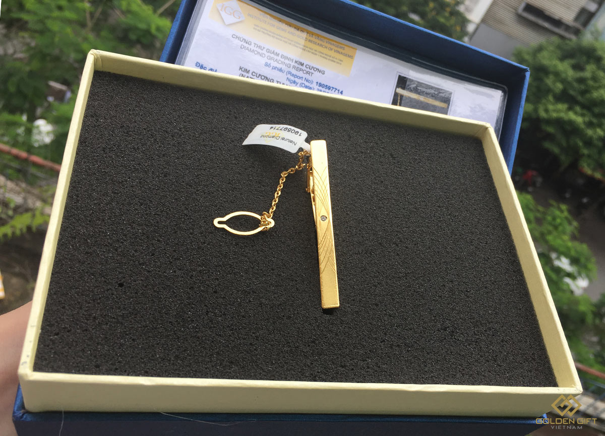 Kẹp cà vạt mạ vàng đính kim cương tự nhiên của Golden Gift Việt Nam