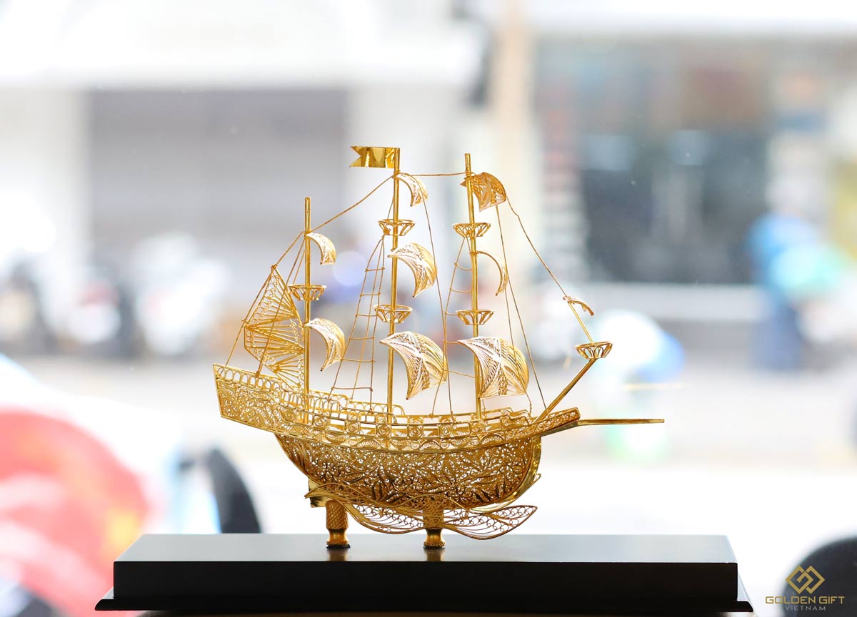 Mô hình thuyền buồm phong thủy mạ vàng - hoài bão chinh phục, vươn tới thành công