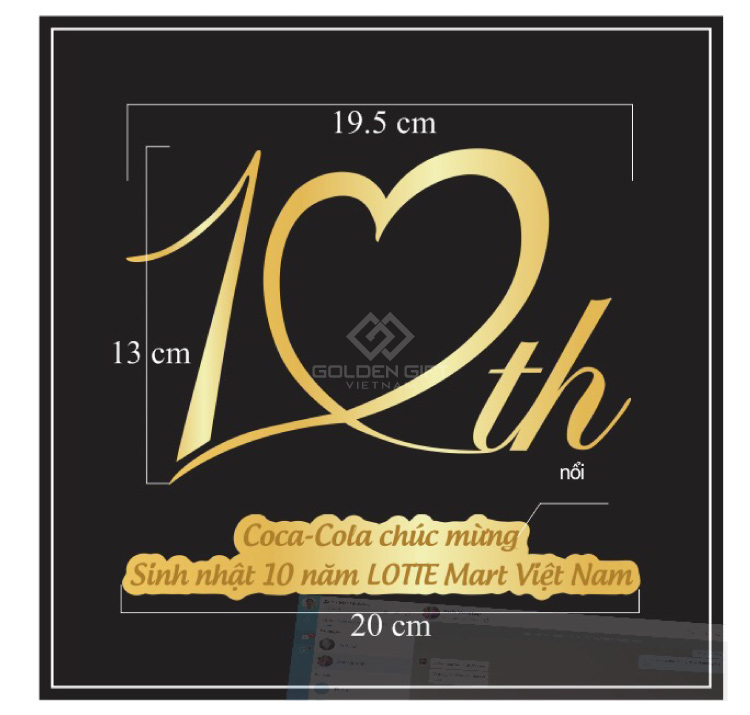 Mẫu thiết kế quà vàng của Coca Cola chúc mừng kỷ niệm 10 năm LOTTE Mart Việt Nam đặt hàng Golden Gift Việt Nam chế tác