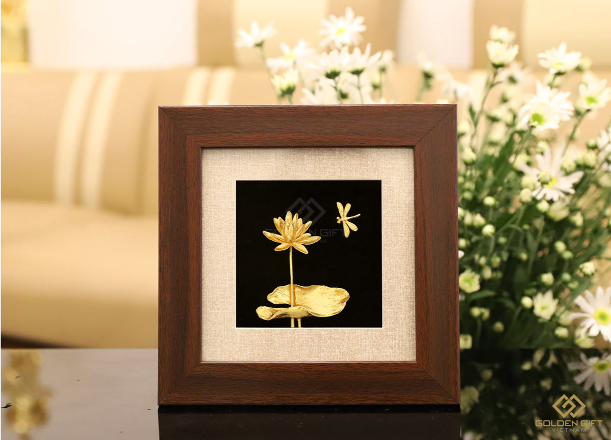 Tranh hoa sen mạ vàng được Golden Gift Việt Nam mạ vàng thật bằng phương pháp điện phân