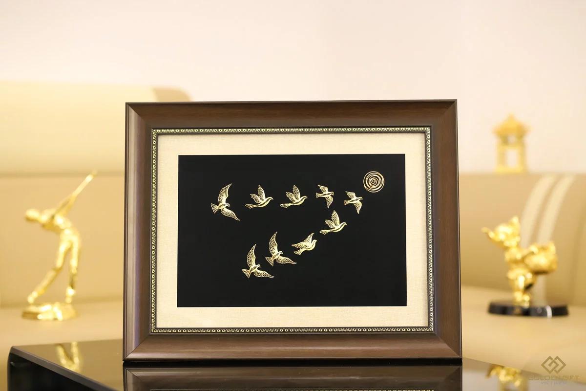 Tranh những cánh chim khát vọng mạ vàng được chế tác hoàn toàn thủ công bằng công nghệ mạ vàng điện phân hiện đại