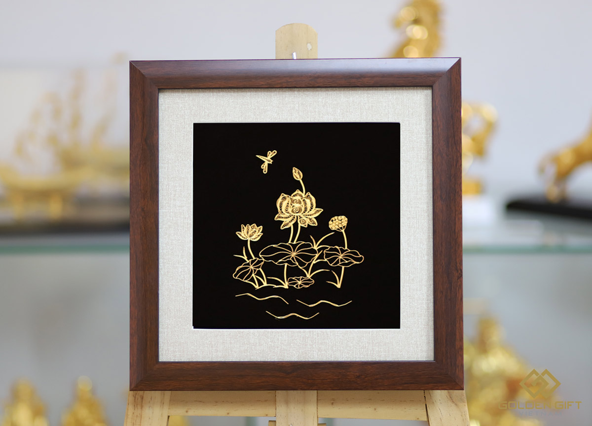 Bức tranh Hoa sen mạ vàng rất thích hợp làm quà tặng 20/10 cho khách hàng nữ.