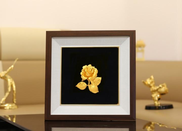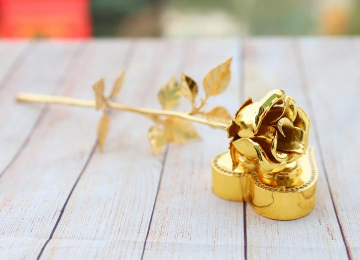 Bông hồng mạ vàng đế trái tim được chế tác thủ công tại Việt Nam