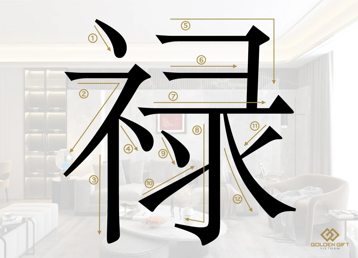 Để dễ hình dung hơn, bạn có thể theo dõi ảnh cách viết chữ Lộc tiếng Trung theo từng nét mà Golden Gift Việt Nam đã minh họa dưới đây.