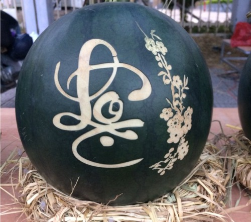 Chữ Lộc thư pháp khắc trên dưa hấu