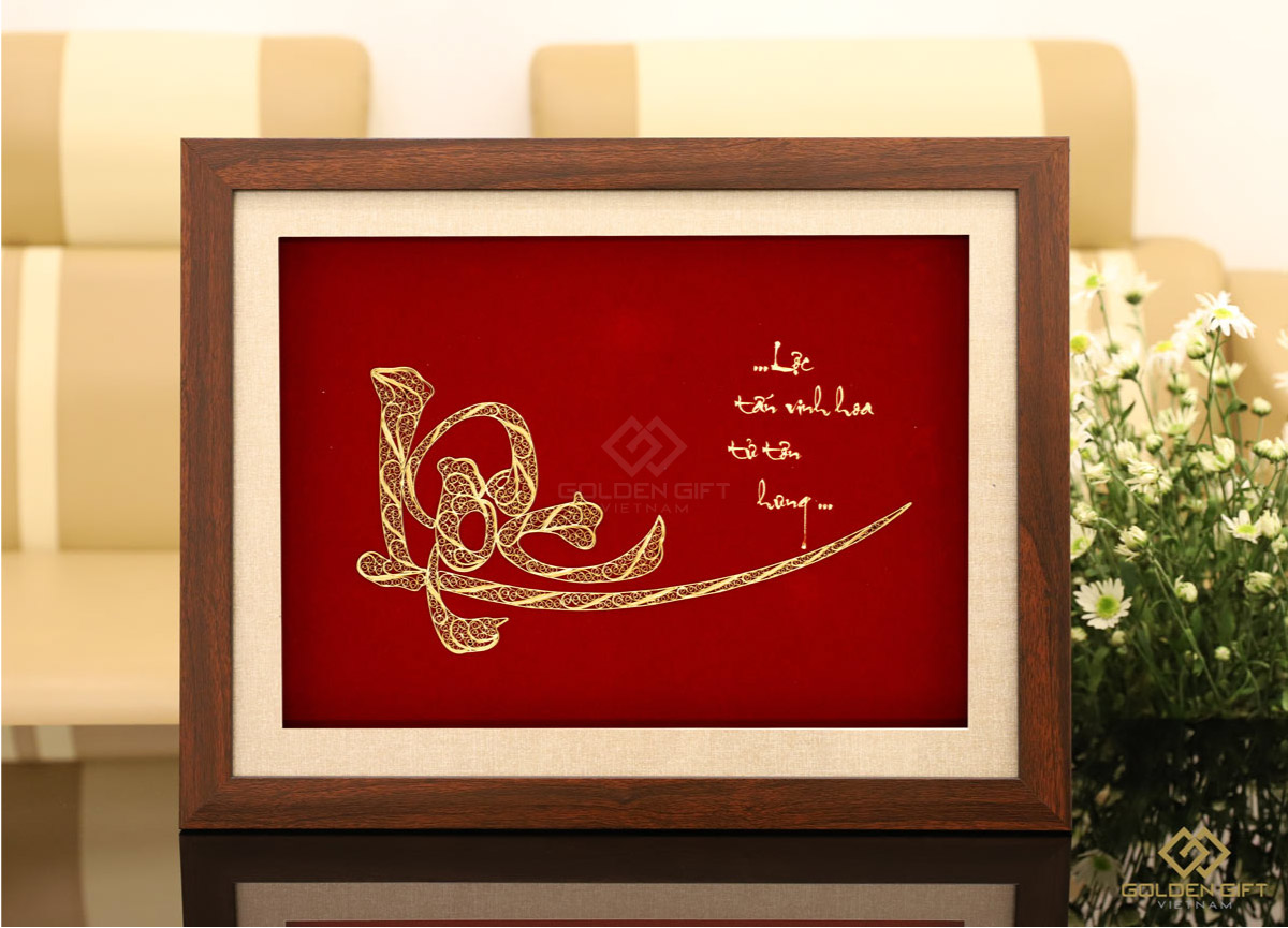 Tranh chữ Lộc thư pháp do Golden Gift Việt Nam chế tác được mạ vàng thật bằng phương pháp điện phân