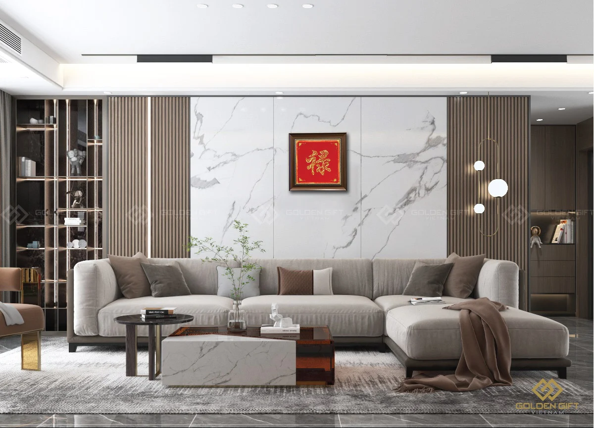 Chữ Lộc trong tiếng Hán hay trong thư pháp, chữ Lộc trong đời sống đều mang ý nghĩa tốt đẹp. Vì thế, từ xưa theo quan niệm phong thủy treo chữ Lộc trong nhà sẽ mang tới nguồn năng lượng tài lộc cho gia đình. Và phòng khách được xem là vị trí lý tưởng nhất để treo tranh chữ Lộc. Đây là vị trí hội tụ nhiều luồng vượng khí, tài lộc cho gia đình. Không chỉ vậy, phòng khách còn là nơi đón khách của gia đình là khoảng không gian sinh hoạt chung của cả gia đình. Đôi khi phòng khách còn là đại diện, là bộ mặt của gia đình, là nơi thể hiện cuộc sống của các thành viên trong ngôi nhà.
