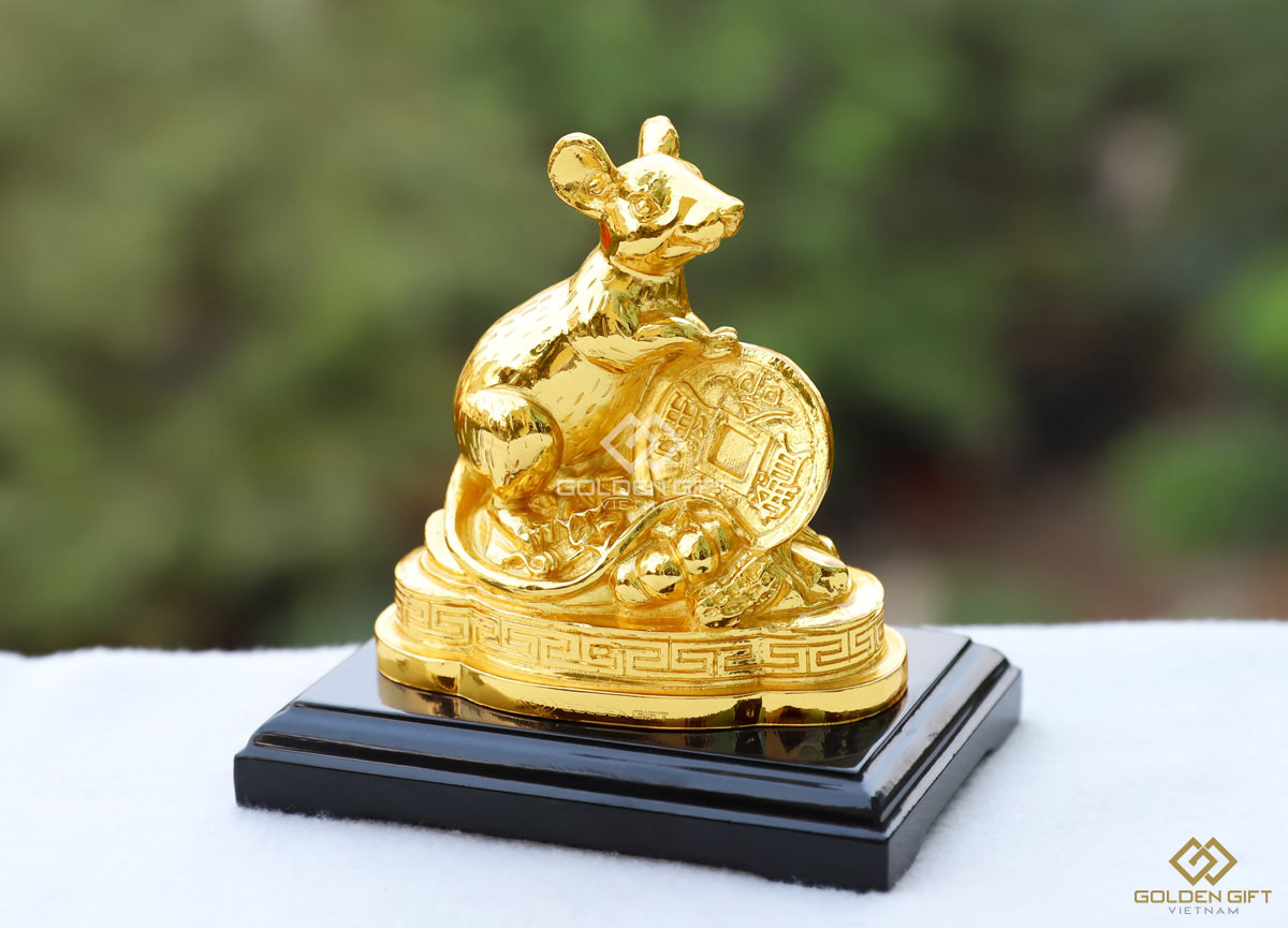 Để chào đón năm mới với khởi đầu thuận lợi, những vật phẩm phong thuỷ may mắn trong phòng làm việc hầu như không thể thiếu. Giá đỡ danh thiếp hình Chuột mạ vàng 24K do Golden Gift Việt Nam chế tác là mẫu quà tặng cao cấp được thiết kế riêng biệt cho khách hàng doanh nghiệp, doanh nhân. Quà vàng vừa mang ý nghĩa phong thuỷ cầu chúc một năm mới an lành, hạnh phúc, lộc tài vừa thể hiện sự uy nghiêm, vững chãi, uy quyền của lãnh đạo.