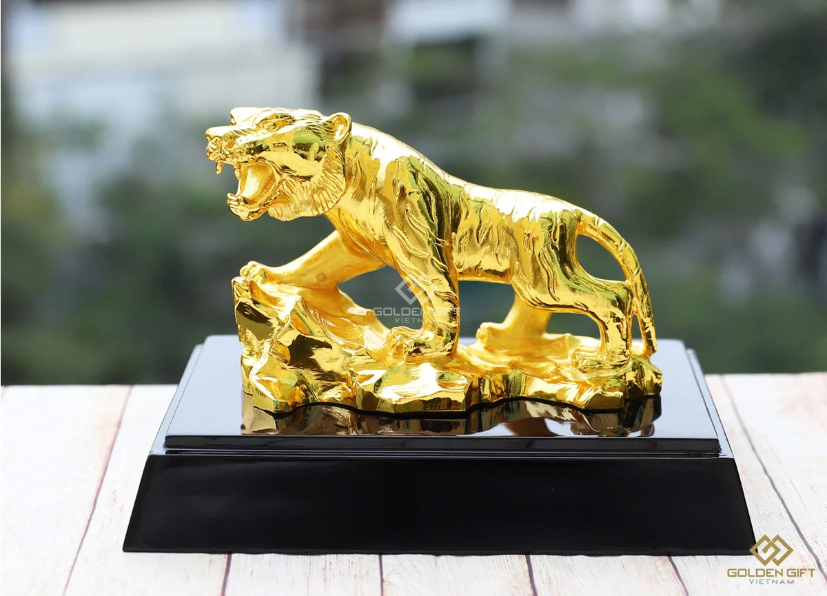 Tượng Hổ phong thủy do Golden Gift Việt Nam chế tác được mạ vàng thật bằng phương pháp điện phân.