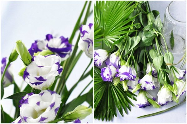 Bước 2: Cắm hoa cát tường vào lọ, điều chỉnh sao cho các cành hoa tỏa tròn đều và hướng về phía trước